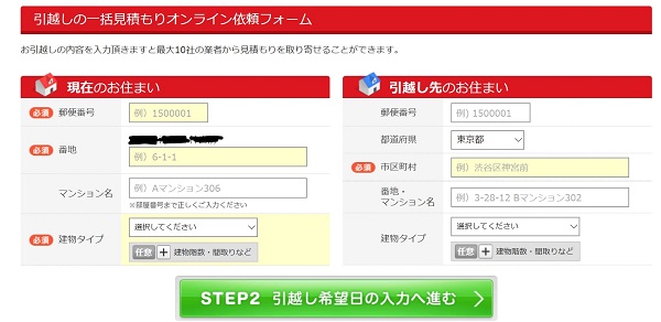 引越し侍の一括見積もりサービスの入力手順をお伝えします。